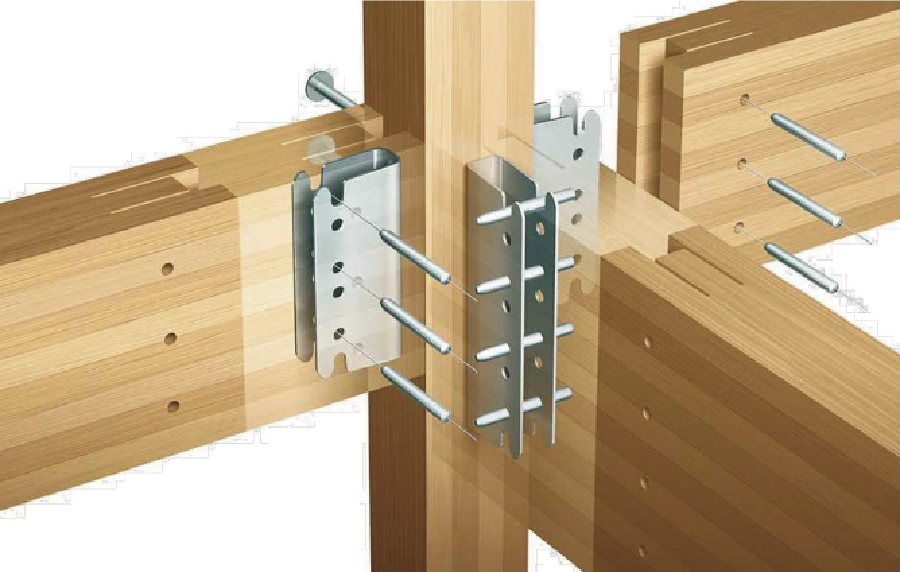 金物接合工法とは、 軸組工法で継手・仕口加工を金物に置き換えた工法です。 接合部の耐力が明確で、 断面欠損が少ないことから、安定した高強度な構造体になります。