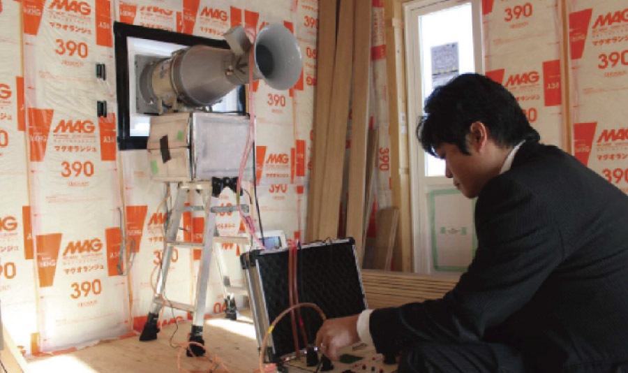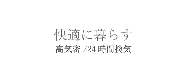 建築中と完成後の2度、 気密測定検査を行い、 c 値が2.0cm/而以下であることを確認しています。 冷暖房で快適に保たれている室温を損なうことなく、 家中の空気の入換ができるように、 熱交換型の24時間換気設備を標準仕様にしています。