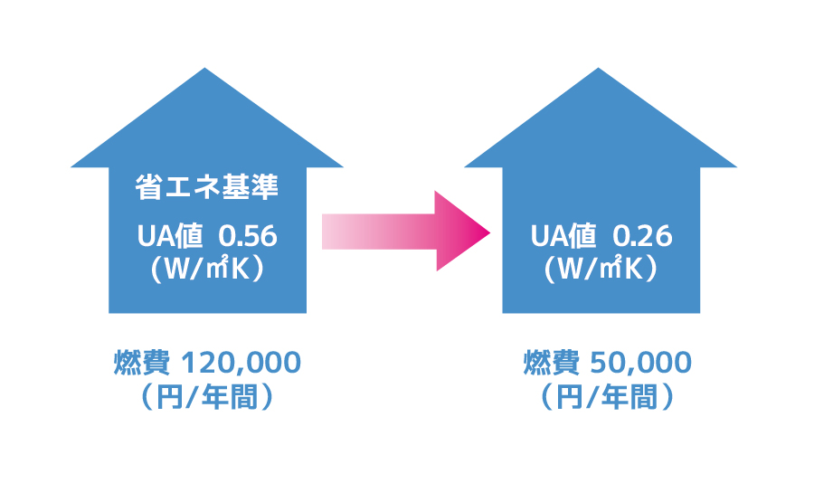 「省エネ基準住宅」の「半分の燃費」で暮らすことを目指しています。